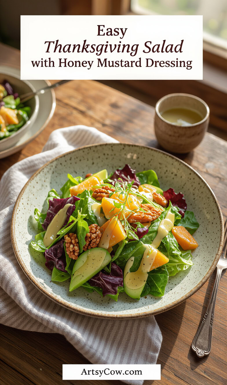 This Easy Thanksgiving Salad with Honey Mustard Dressing is simple enough for weeknights, but festive enough for the feast. And yes, the honey mustard is the star—without needing a chef cape.
