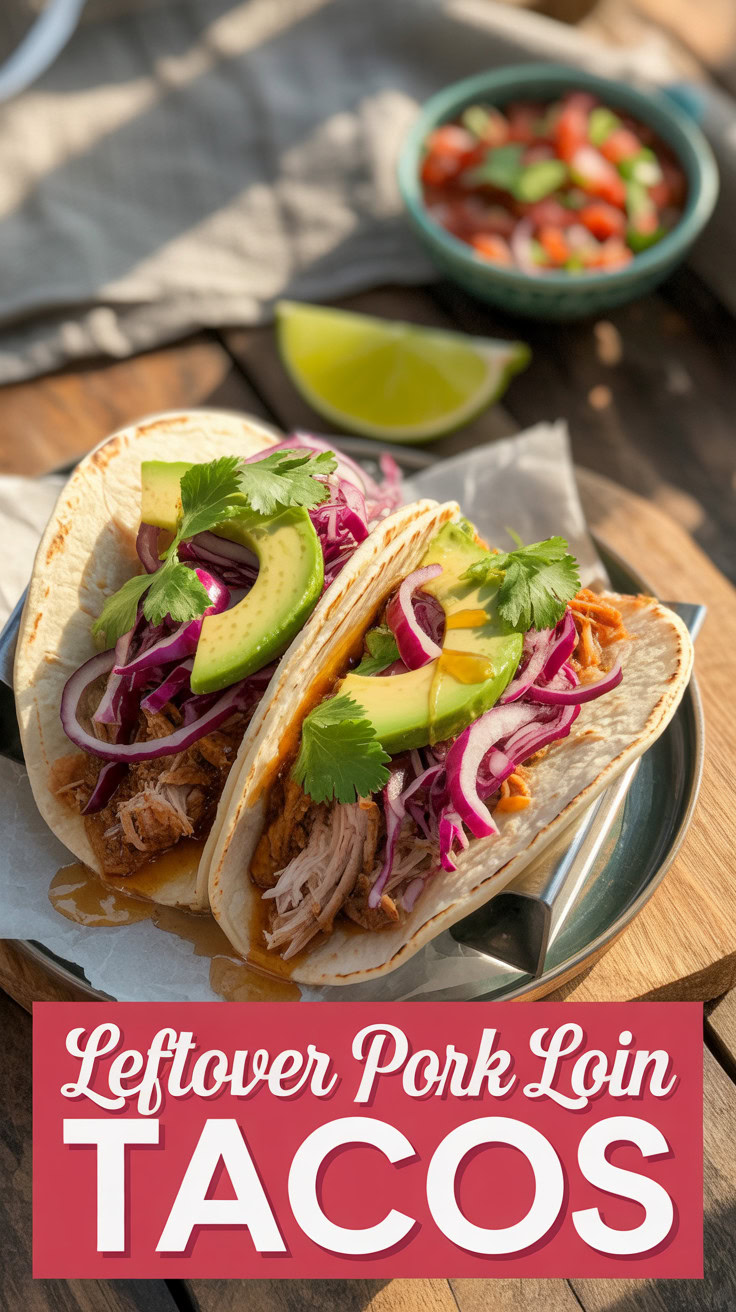 Make-ahead note: You can prep the toppings in advance—slice the avocado last-minute—and store seasoned pork in the fridge for up to two days. Health highlight: Pork loin is lean and high in protein, so these tacos are a great way to stretch a single cooked protein into several quick meals.